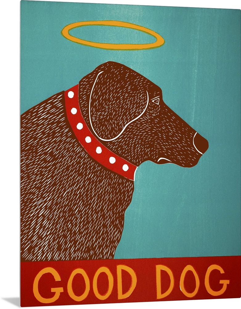 <p>Illustration of a chocolate lab with a halo and the phrase "Good Dog" written at the bottom.</p>