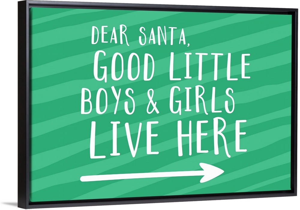 <p>Graphic holiday art with large text above an arrow, on a two toned striped background.</p>