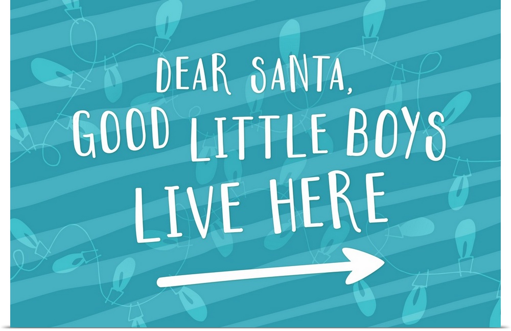 <p>Holiday art with large text above an arrow, on a two toned striped background that includes a string of lights graphic.</p>