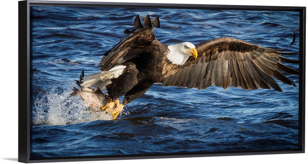 <p>A Bald Eagle flies down to the water to catch fish.</p>