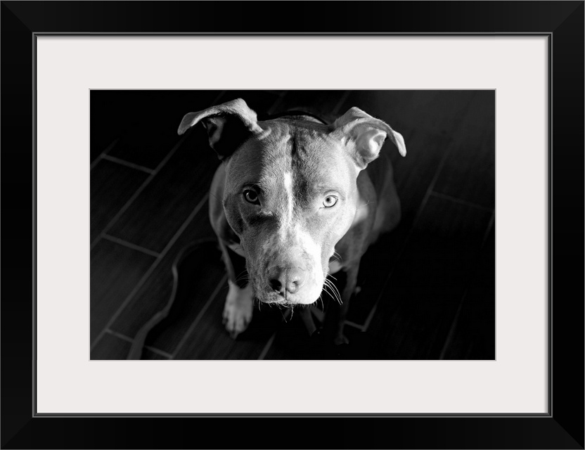 <p>Sonny, a dog, looking up asking for love.</p>