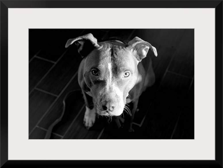 <p>Sonny, a dog, looking up asking for love.</p>