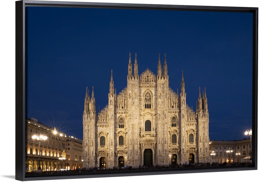 <p>Gothic spires on the facade of the Milan Cathedral in the Piazza del Duomo at dusk, Milan, Lombardy, Italy, Europe</p>