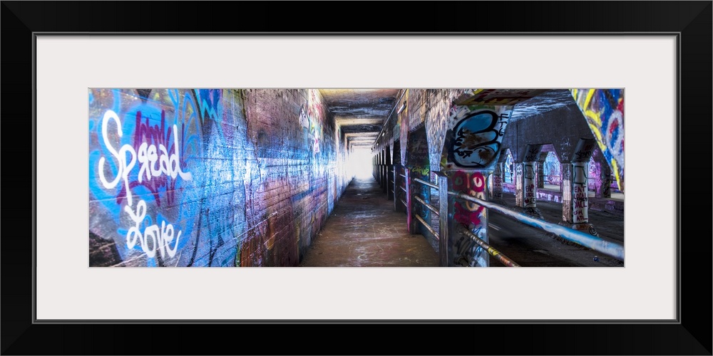 <p>Street art covers the walls, floors, and columns of the Krog Street Tunnel, connecting Inman Park and Cabbagetown, downtown Atlanta, Georgia.</p>