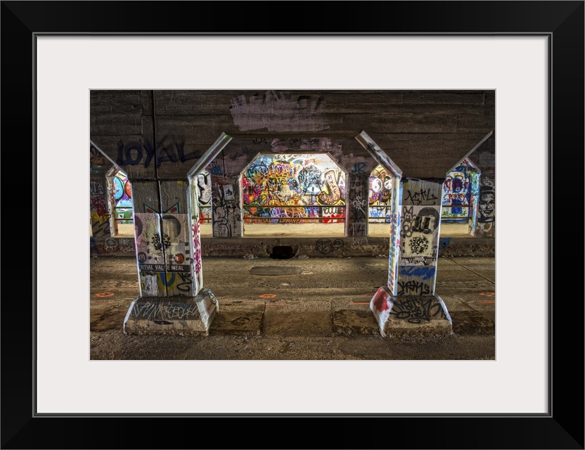 <p>Street art covers the walls, floors, and columns of the Krog Street Tunnel, connecting Inman Park and Cabbagetown, downtown Atlanta, Georgia.</p>