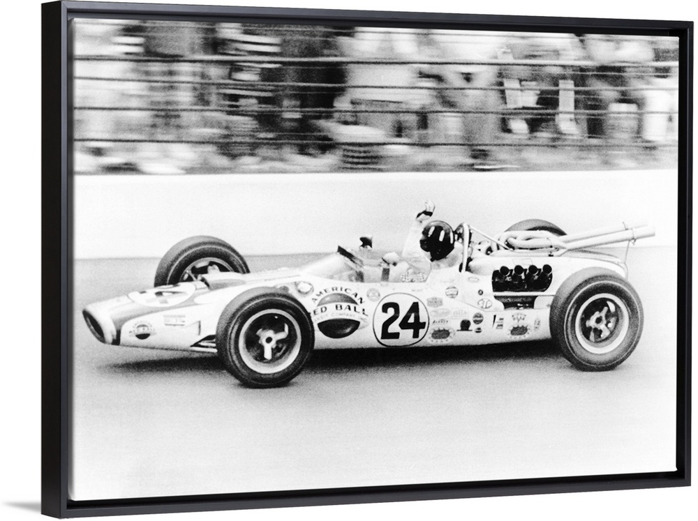 <p>Graham Hill, waves as his car streaks toward the finish line to win the Indianapolis 500. May 30, 1966. The Golden Anniversary of speedway classic was Hill's first race at Indianapolis.</p>