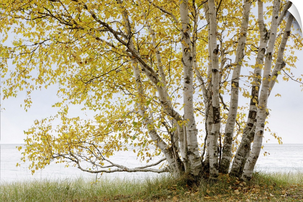 <p>Grand birch tree on the shores of Lake Superior in autumn in the Terrace Bay Area of Ontario; Ontario, Canada</p>