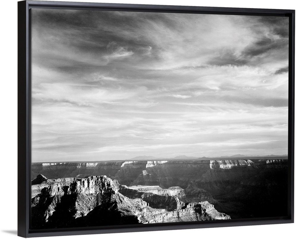 <p>Grand Canyon from N. Rim, 1941, canyon in foreground, horizon, mountains and clouded sky.</p>