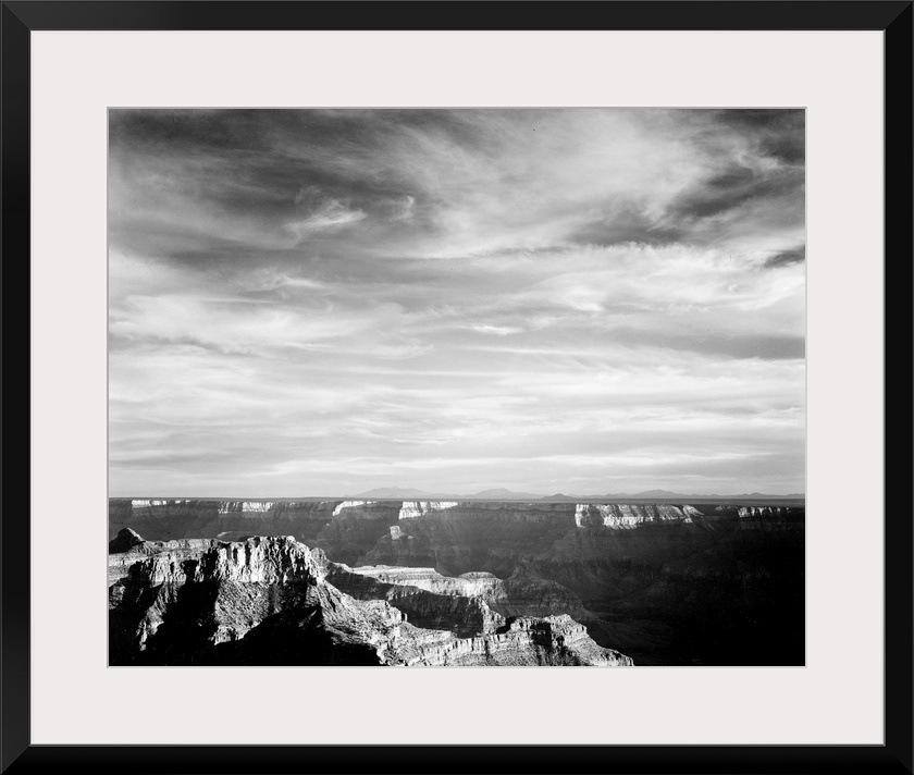 <p>Grand Canyon from N. Rim, 1941, canyon in foreground, horizon, mountains and clouded sky.</p>