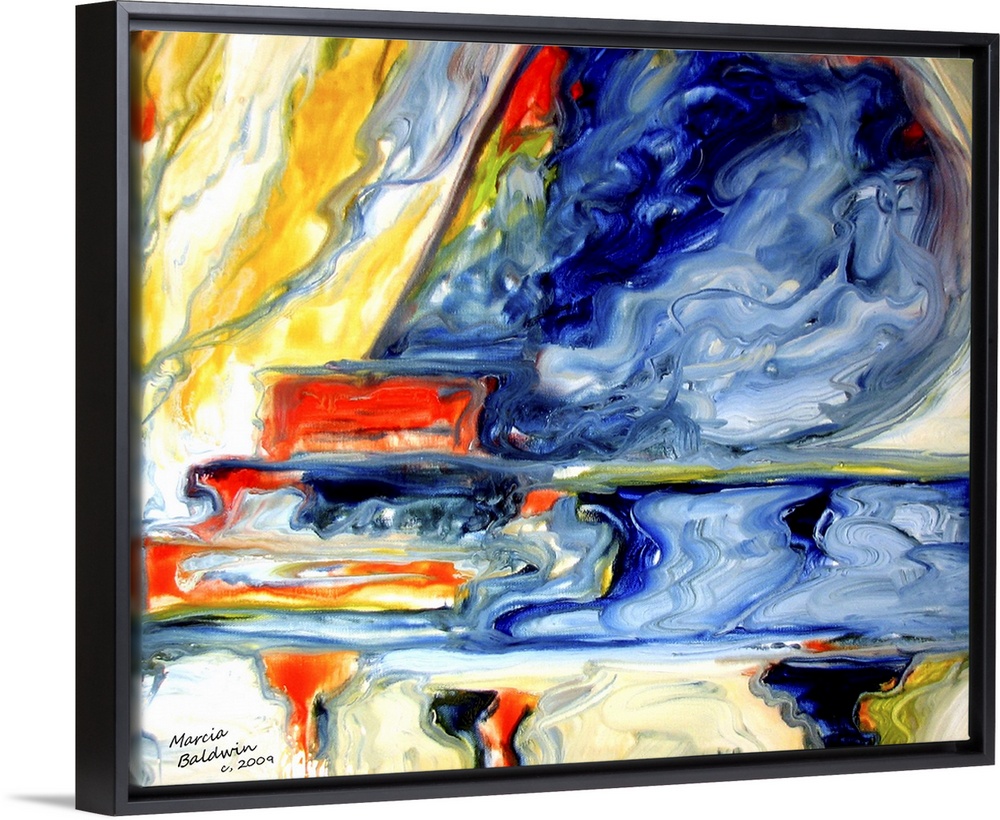 <p>Abstract painting of a grand piano created with vibrant, marbling colors.</p>