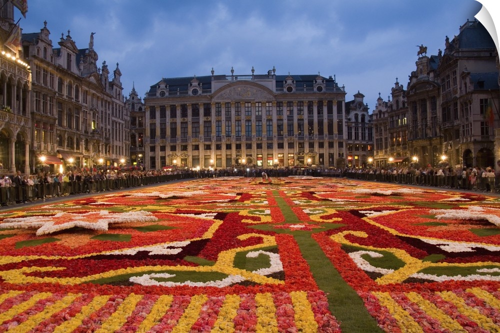 <p>Wonderful night exposure of the beautiful Grand Place with the famous Flower Carpet with ornate buildings in Brussels Belgium</p>