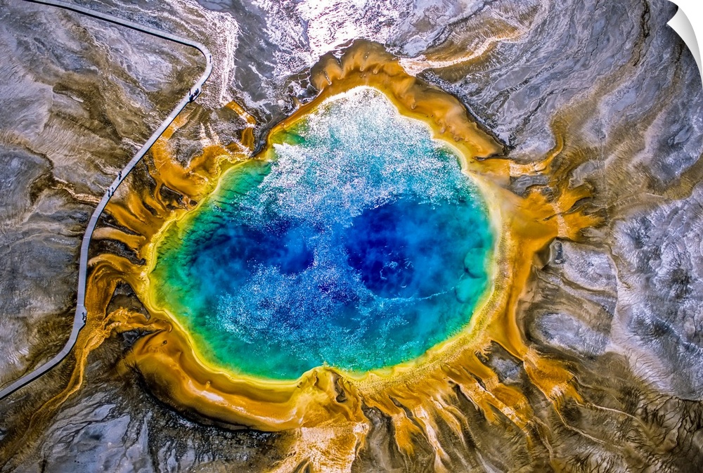 <p>Grand Prismatic Spring is one of the largest and most beautiful examples of a common hydrothermal feature in Yellowstone National Park and one of the largest hot springs in the United States.</p>