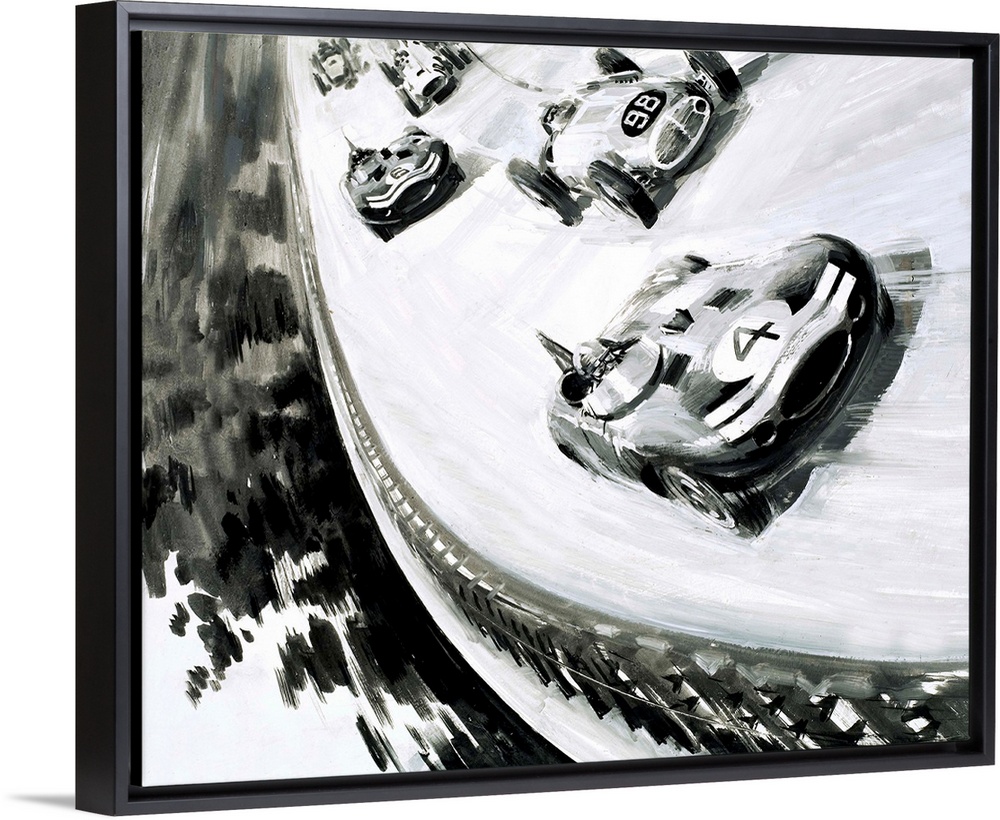 Art Black and White Wall Art Painting English School Sports Motorsports Grand Prix Transportation Car Race Cars Vintage Art
