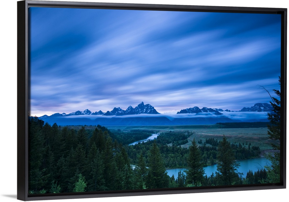 <p>Clouds illuminated with red light above the Grand Teton mountains seen from the Snake River lookout at sunset, Grand Teton National Park, Wyoming.</p>