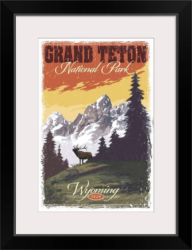 Art Mountains Lantern Press United States Wyoming Grand Tetons