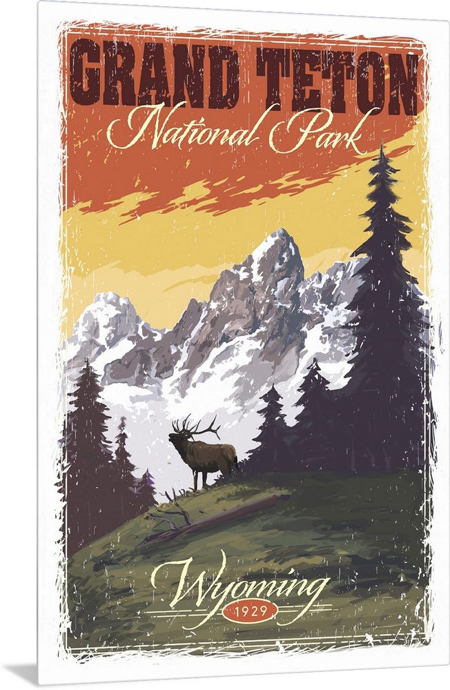 Art Mountains Lantern Press United States Wyoming Grand Tetons