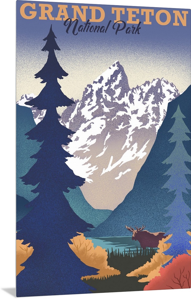 Art Mountains Lantern Press United States Wyoming Grand Tetons