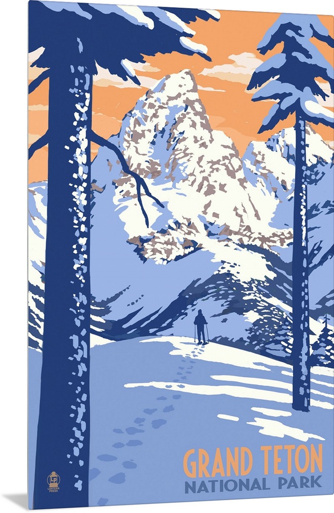 Art Winter Mountains Lantern Press United States Wyoming Grand Tetons