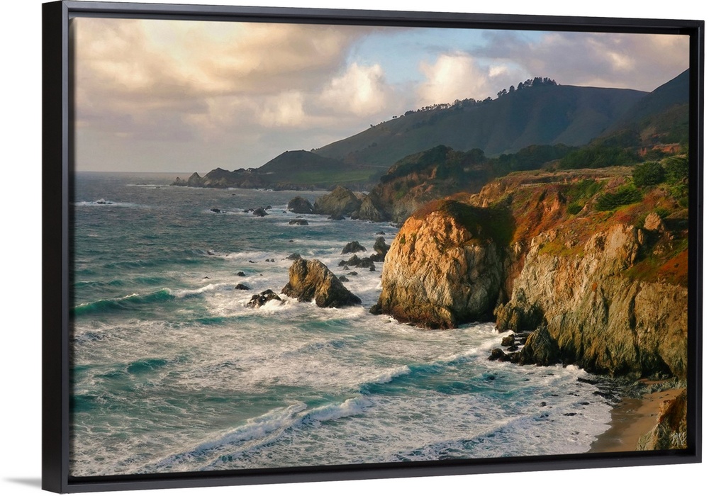<p>The ocean meets a spectacular rock formation near Rocky Creek Bridge in Big Sur, and the teals and blues of the water contrast with the warm sunset colors of the granite and coastal plants. Michael Lynberg's stunning works of photo-impressionism capture the breathtaking California coastline in unique and captivating ways, adding beauty and inspiration to the collector's home.</p>