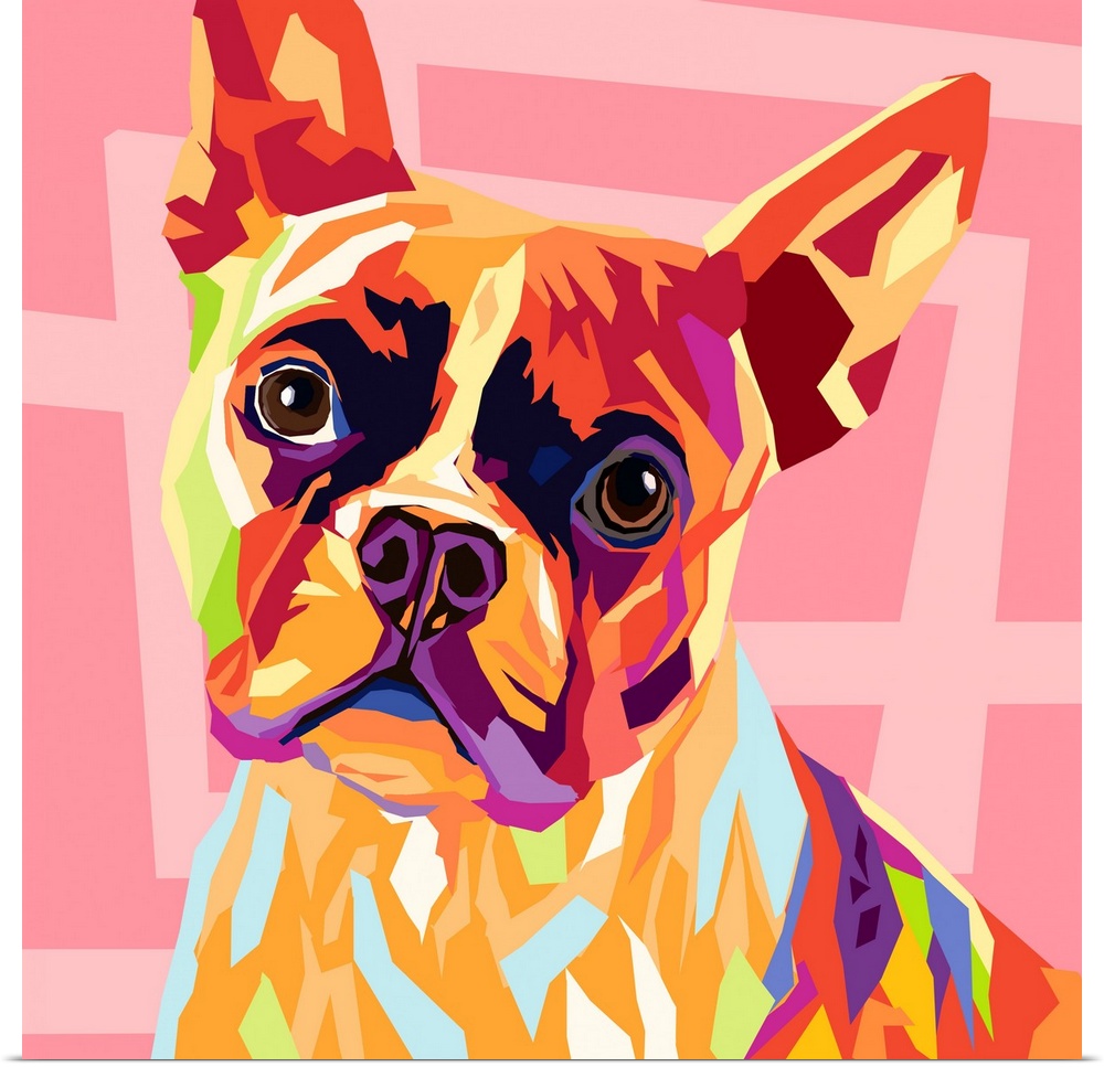 Art Decorative Art Graphic Art Pink Wall Art Wildlife Dog French Bulldog