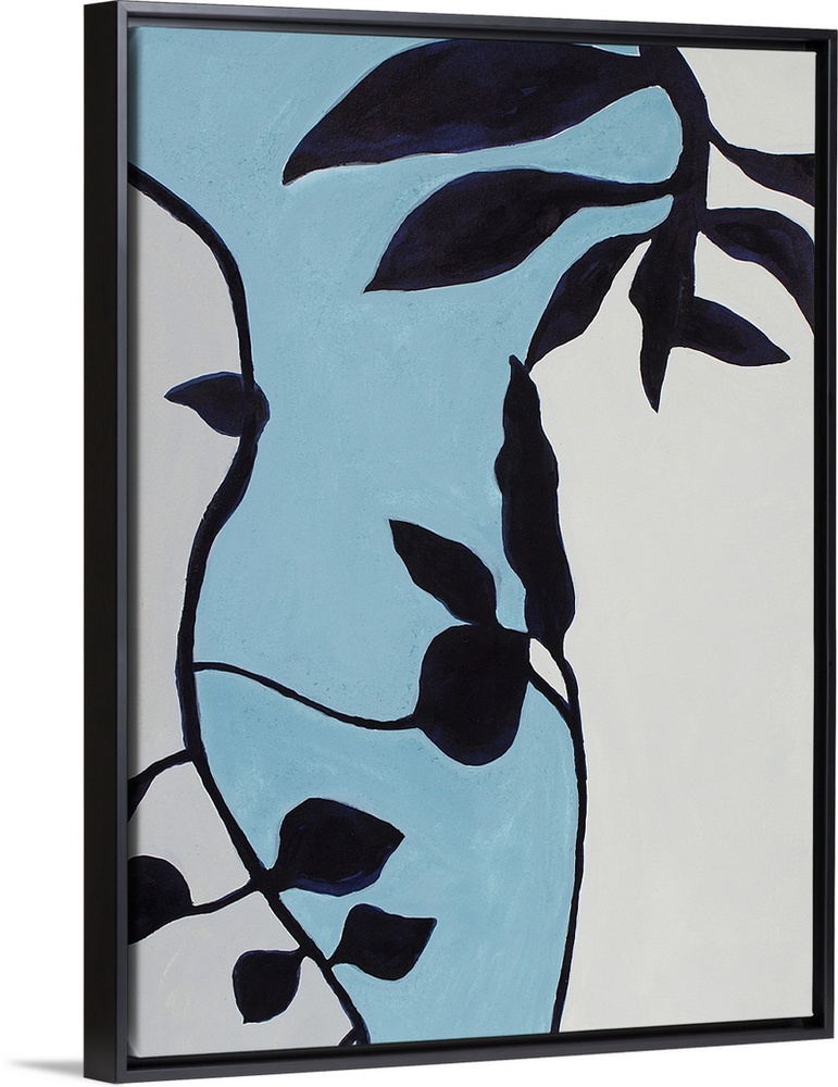Blue Wall Art Contemporary Art Rob Delamater Florals Leaves Grey Wall Art Painting