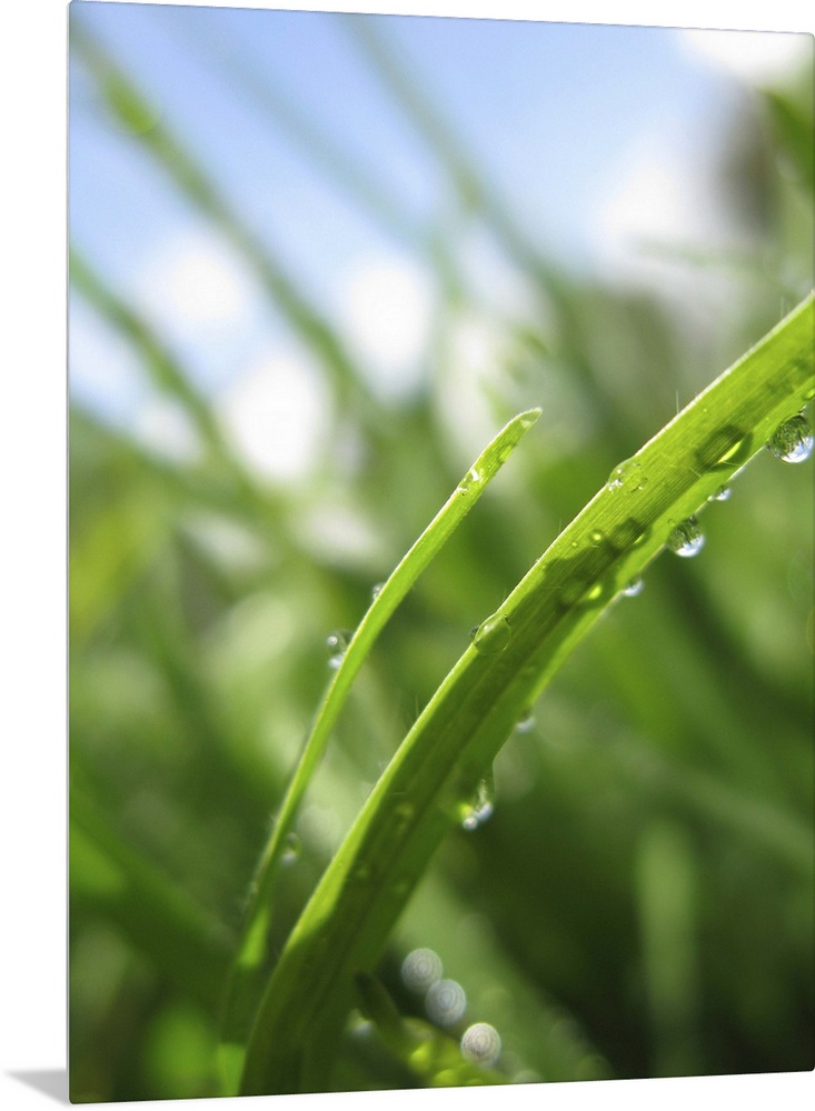 <p>macro shot of grass with water droplets in summer sunlight</p>