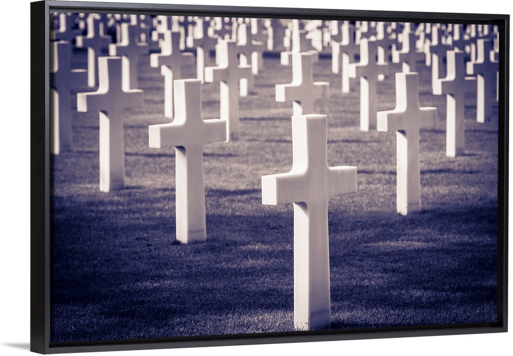<p>Graves at the American Cemetery, Omaha Beach, Colleville-sur-Mer, Normandy, France.</p>