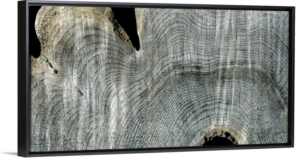 <p>Abstract artwork in grey shades made from cross sections of tree trunks.</p>
