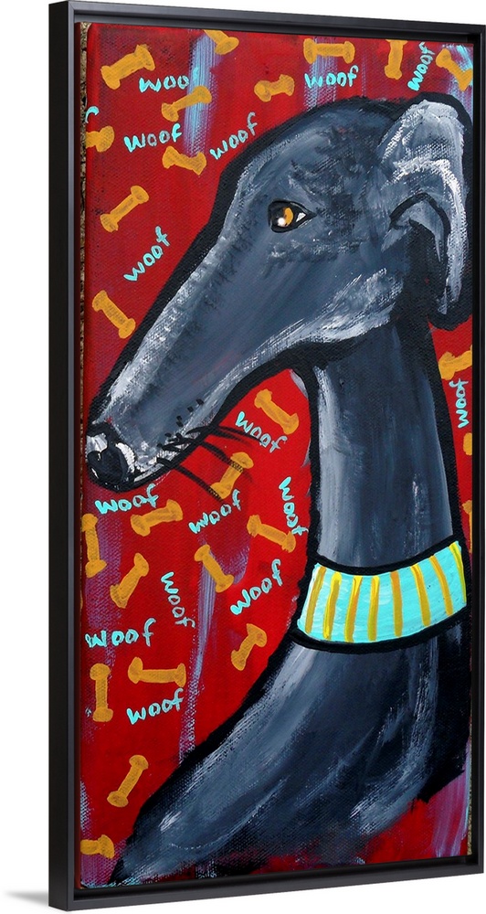 <p>Whimsical Greyhound painting on a narrow panel.</p>