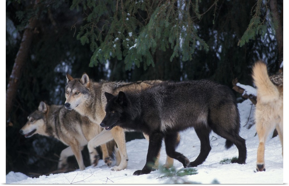 <p>Gray wolf (Canis lupus) pack in the foothills of the Takshanuk mountains, northern southeast Alaska.</p>