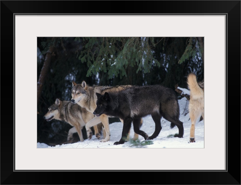 <p>Gray wolf (Canis lupus) pack in the foothills of the Takshanuk mountains, northern southeast Alaska.</p>