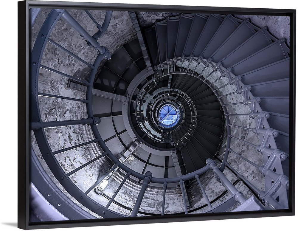 <p>View through a spiral staircase to the top of a lighthouse.</p>