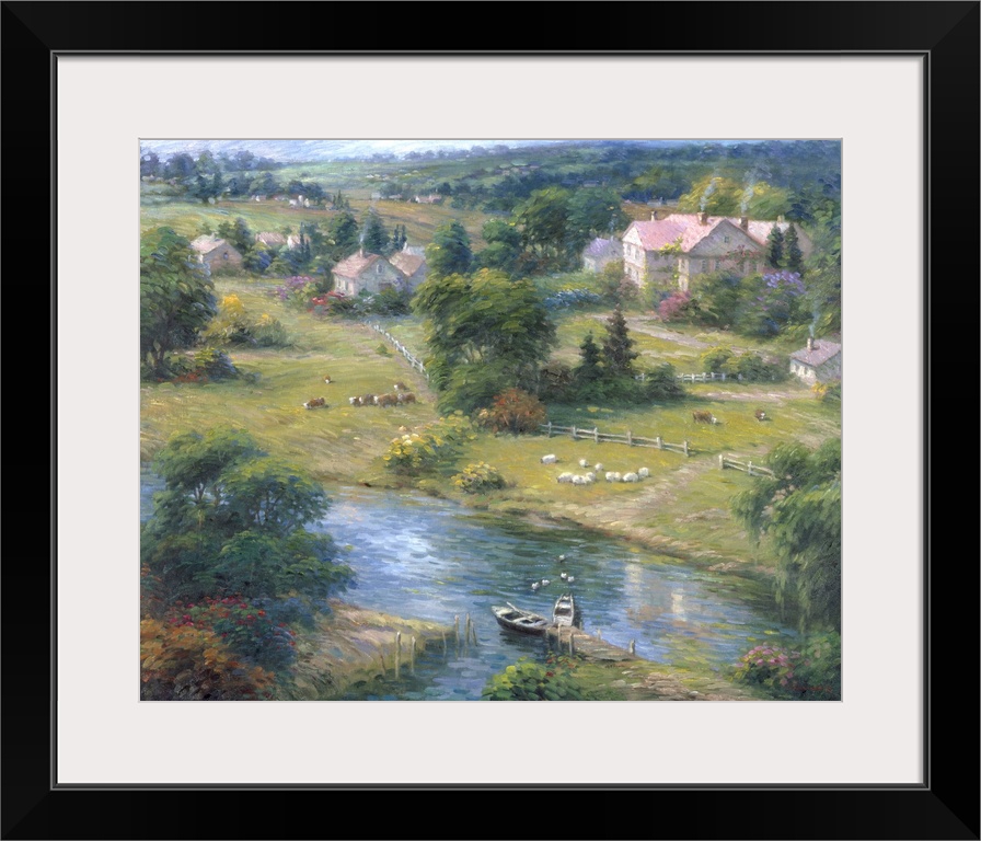 <p>Contemporary painting of an idyllic countryside scene.</p>