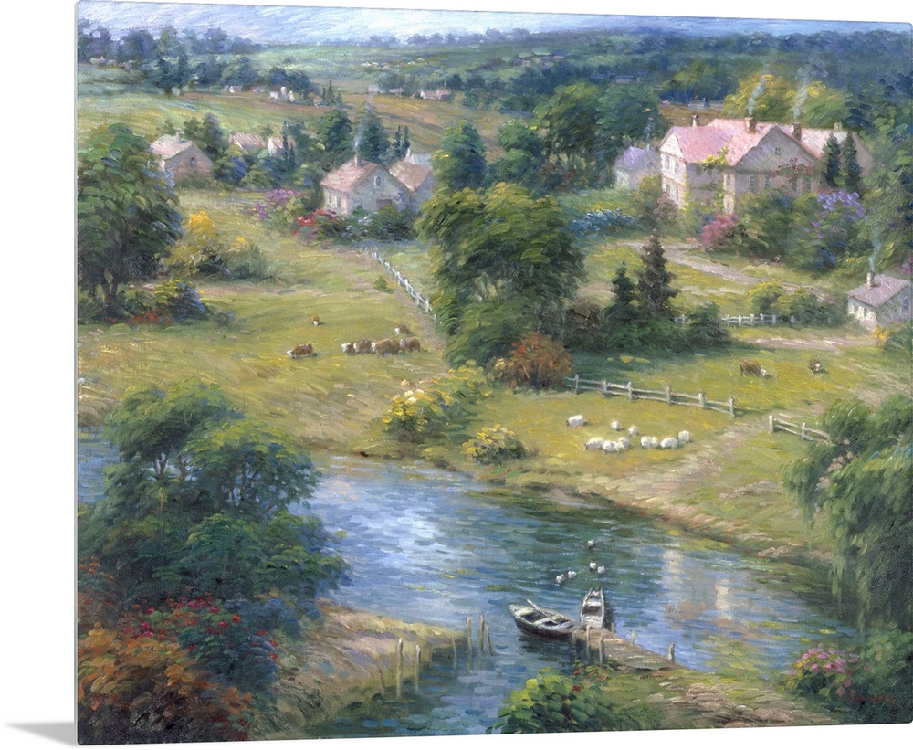 <p>Contemporary painting of an idyllic countryside scene.</p>