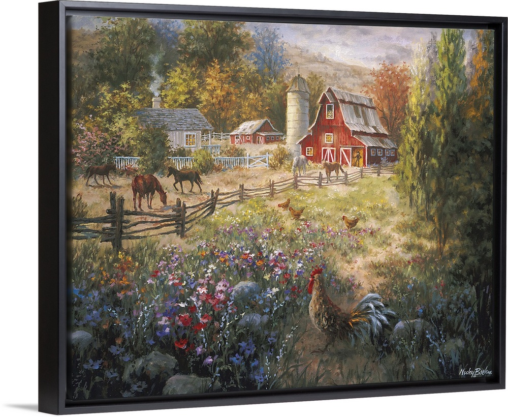 <p>Nicky Boehme imagines a world full of light and goodness in paintings that capture idyllic scenes of the laid-back life. Boehme is the consummate artist who painted as a young child and throughout her storied professional life. The dramatic interplay of light, color and mood create soothing scenery for wall art that will complement the atmosphere in quiet spaces such as bedrooms, reading nooks or dens. The world through the eyes and skilled brush strokes of Nicky Boehme glitters with romanticism and realism. You can almost taste the snow flurries covering a winter scene or hear the brook gurgling past a remote homestead.</p>