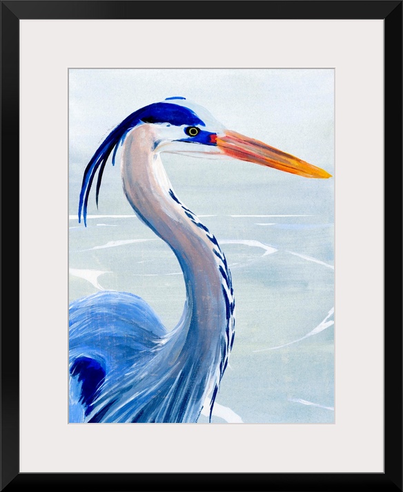 Art Beach House Décor Blue Wall Art Decorative Art Painting Annie Warren Wildlife Bird Heron and Egret