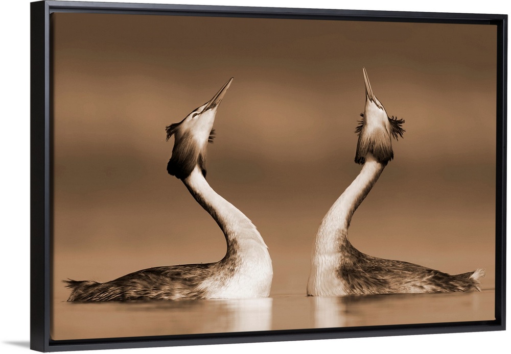 <p>Great Crested Grebe (Podiceps cristatus) pair courting, Netherlands.</p>