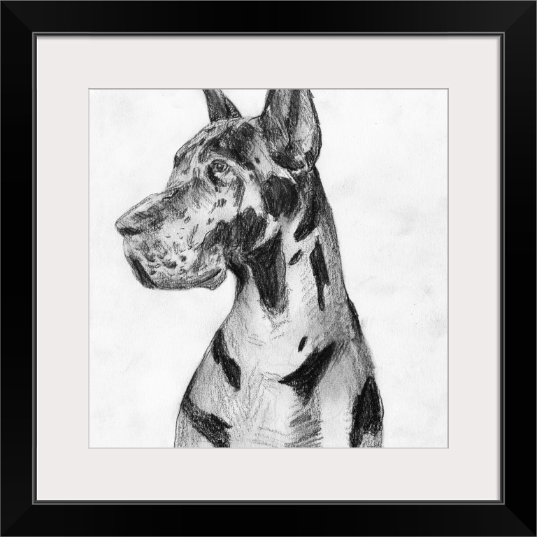 Art Black and White Wall Art Decorative Art Drawing Illustrations Melissa Wang Wildlife Dog Great Dane