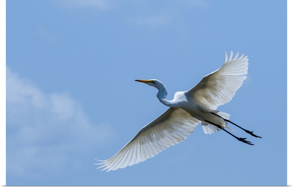 <p>Great egret (Ardea alba) in flight, Lake Jipe, Tsavo West National Park, Kenya, East Africa, Africa</p>