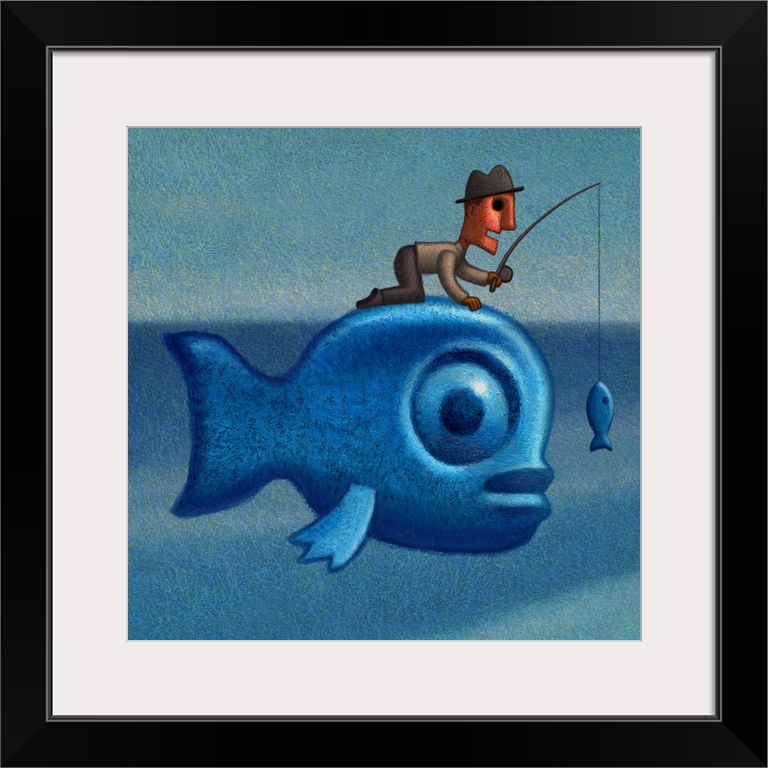 <p>Digital painting of a man on a giant fish with big plans. Be careful what you wish for.</p>