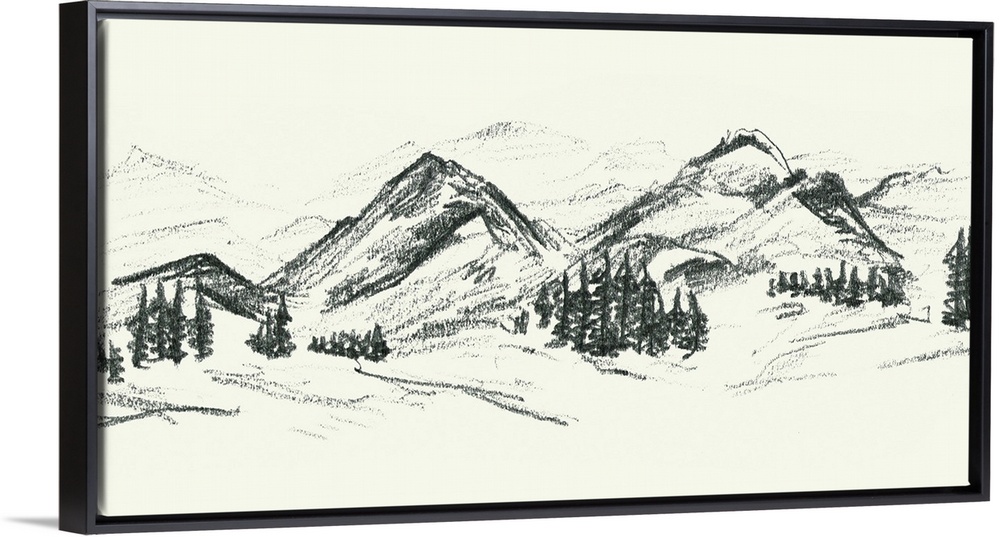 Art Rustic Decorative Art Drawing Grey Wall Art Illustrations Landscapes Mountains Melissa Wang