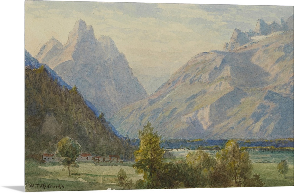 <p>Watercolour painting of a mountainous landscape.</p>