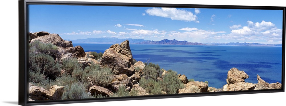 <p>A panorama of the Great Salt Lake of Salt Lake City, Utah.</p>