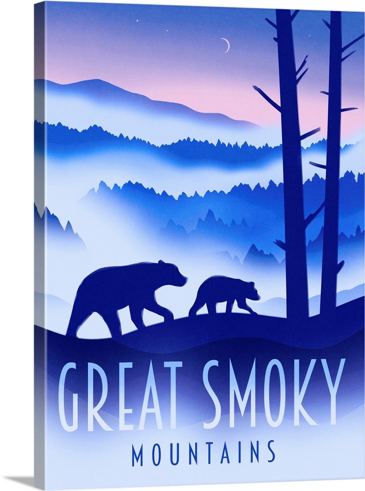 Art Blue Wall Art Decorative Art Graphic Art Landscapes Mountains Tennessee Travel Posters Contemporary Travel Posters Martin Wickstrom Wildlife Bear
