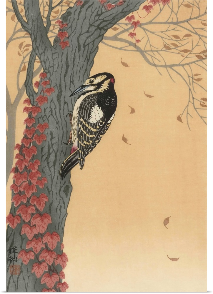 <p>Great Spotted Woodpecker in Tree with Red Ivy by Japanese artist Ohara Koson, 1877 - 1945. Ohara Koson was part of the shin-hanga, or new prints movement.</p>