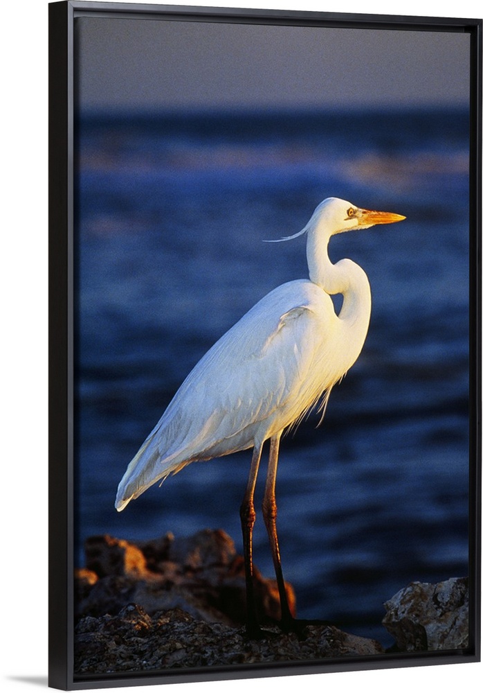 <p>Tall photo print of a sea bird standing on a rock with the ocean in the background.</p>