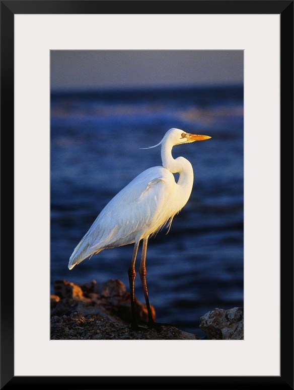 <p>Tall photo print of a sea bird standing on a rock with the ocean in the background.</p>