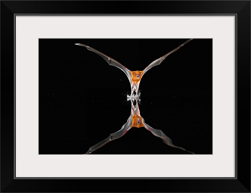 <p>The Greater bulldog bat or fisherman bat (Noctilio leporinus) is a type of fishing bat native to Latin America. The bat uses echolocation to detect water ripples made by the fish upon which they prey, then use their sharp claws and a pouch between its legs to scoop the fish and to catch and cling to it.Individual bat catching fish in the water. Image was taken in a large flight cage where bat was kept for scientific observation. Barro Colorado Island (located in Lake Gatun in Central Panama),important research site and main field station of the Smithsonian Tropical Research Institute</p>