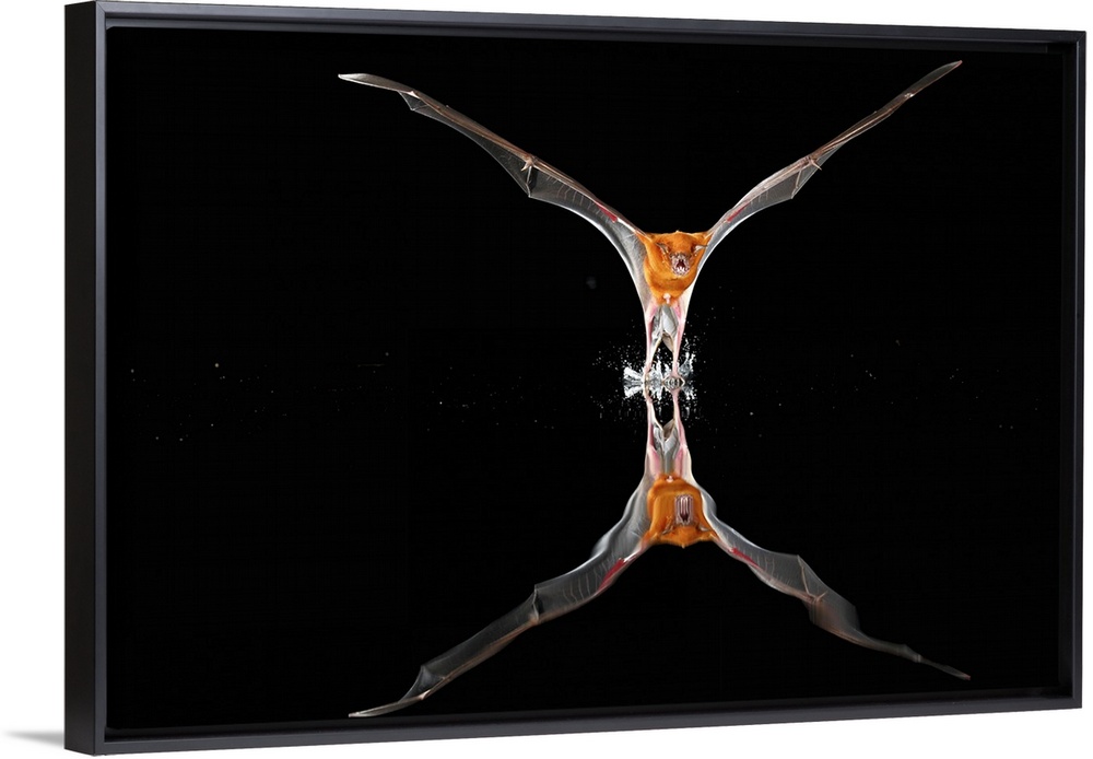 <p>The Greater bulldog bat or fisherman bat (Noctilio leporinus) is a type of fishing bat native to Latin America. The bat uses echolocation to detect water ripples made by the fish upon which they prey, then use their sharp claws and a pouch between its legs to scoop the fish and to catch and cling to it.Individual bat catching fish in the water. Image was taken in a large flight cage where bat was kept for scientific observation. Barro Colorado Island (located in Lake Gatun in Central Panama),important research site and main field station of the Smithsonian Tropical Research Institute</p>