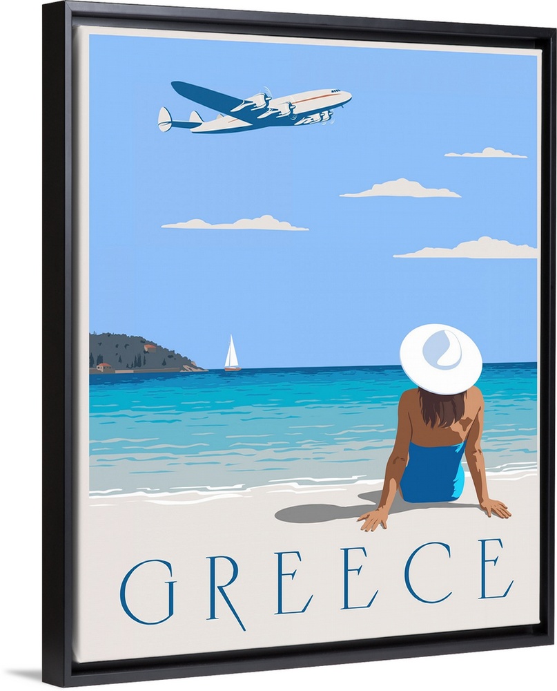 Art Coastal Blue Wall Art Contemporary Art Graphic Art Landscapes Beaches Seascapes Retro Art Greece Steve Thomas Travel Posters